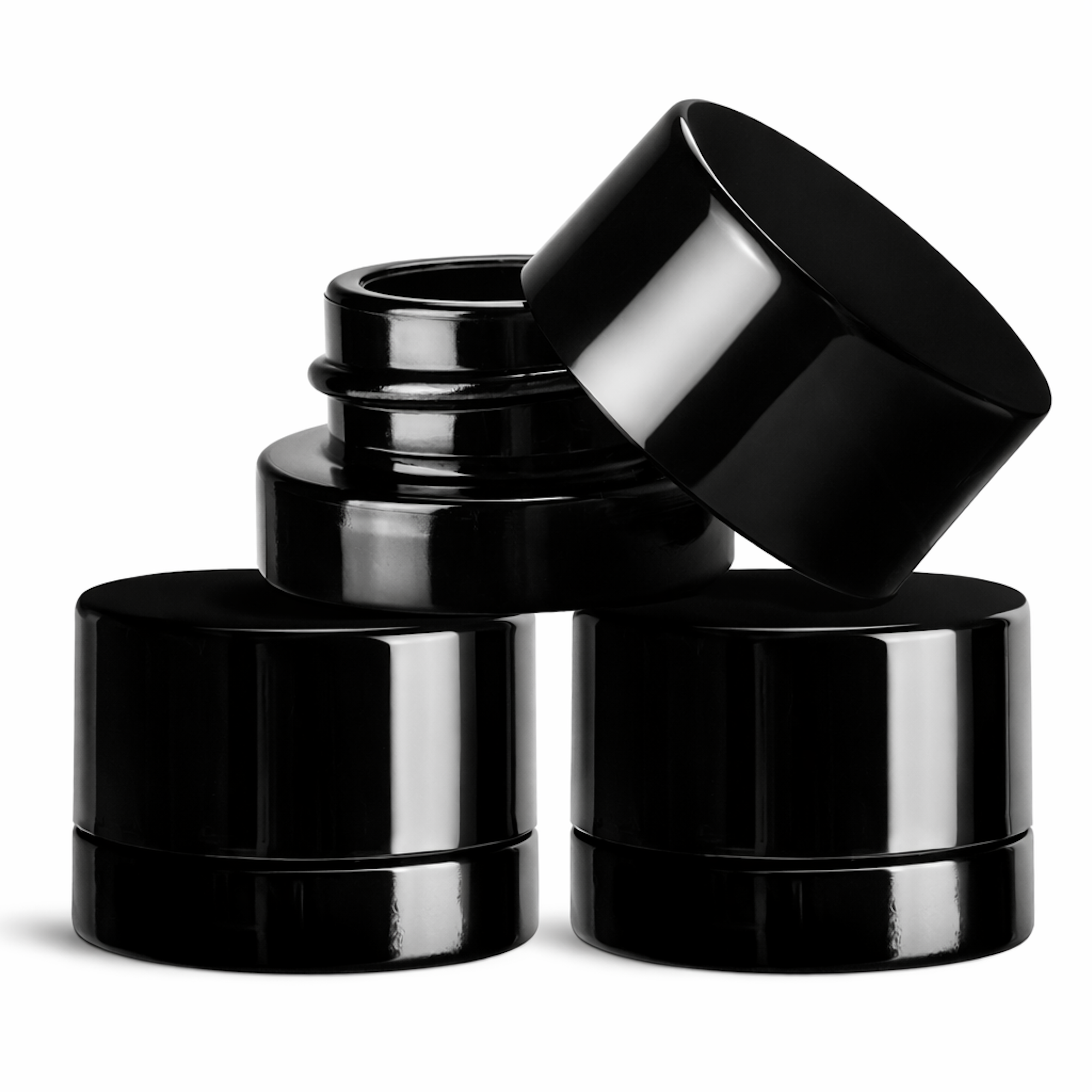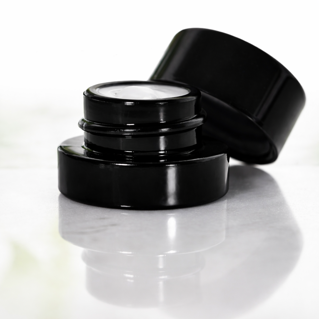 - High quality, thick bottom black glass jars with a polioshed finish
