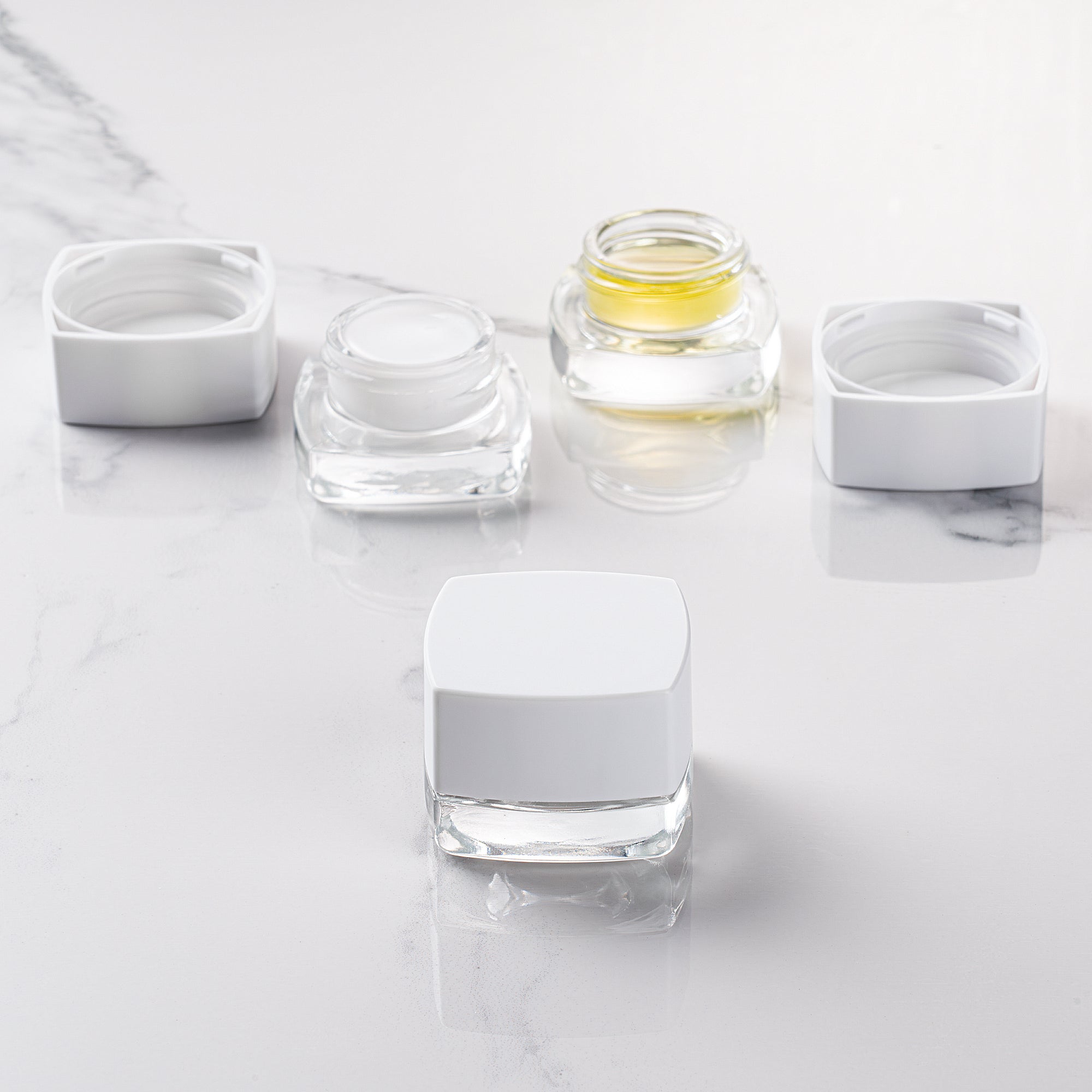 (250 Pack) 5ml Clear Glass Square Pillow Concentrate Container with White Child-Resistant Lid